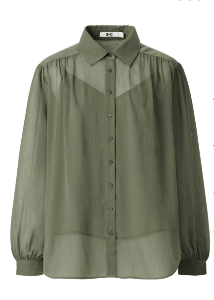 ▲Uniqlo C:燈籠袖透視恤衫/$299,採用棉質縐紗衣料制作。