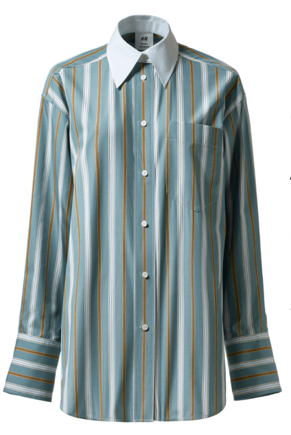 ▲H&M Studio Collection府綢恤衫/$499,背幅肩襠中央部分有工字褶細節。