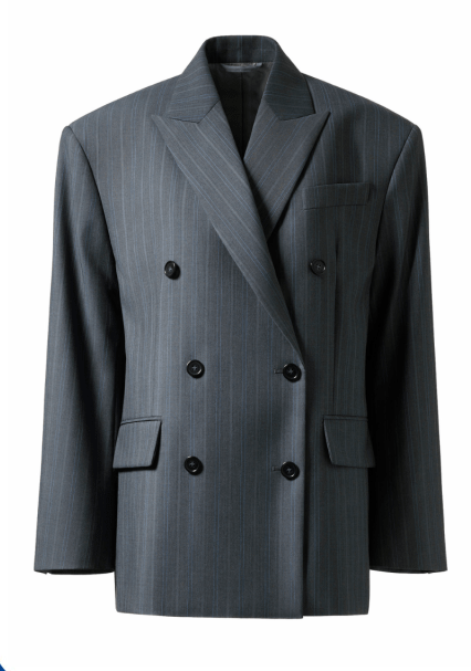▲H&M Studio Collection加大碼羊毛西裝外套/$1,790,Oversize剪裁配搭堅挺肩墊及加大翻蓋式前袋。
