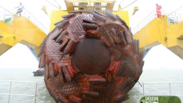 大陸挖泥船“天鯨號”巨大絞刀頭。