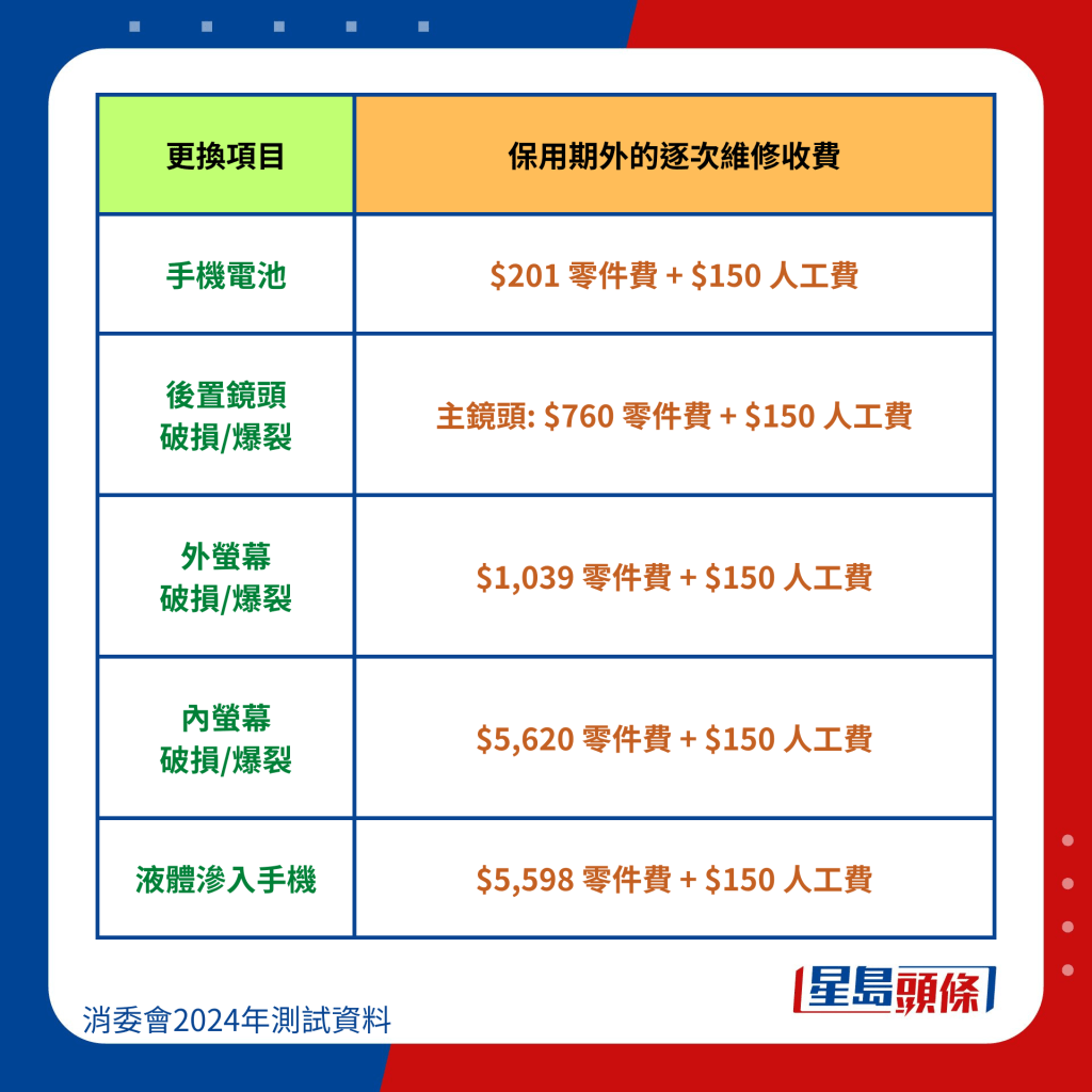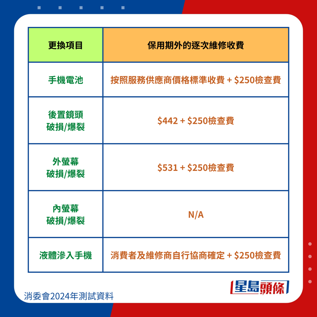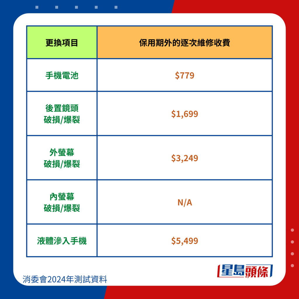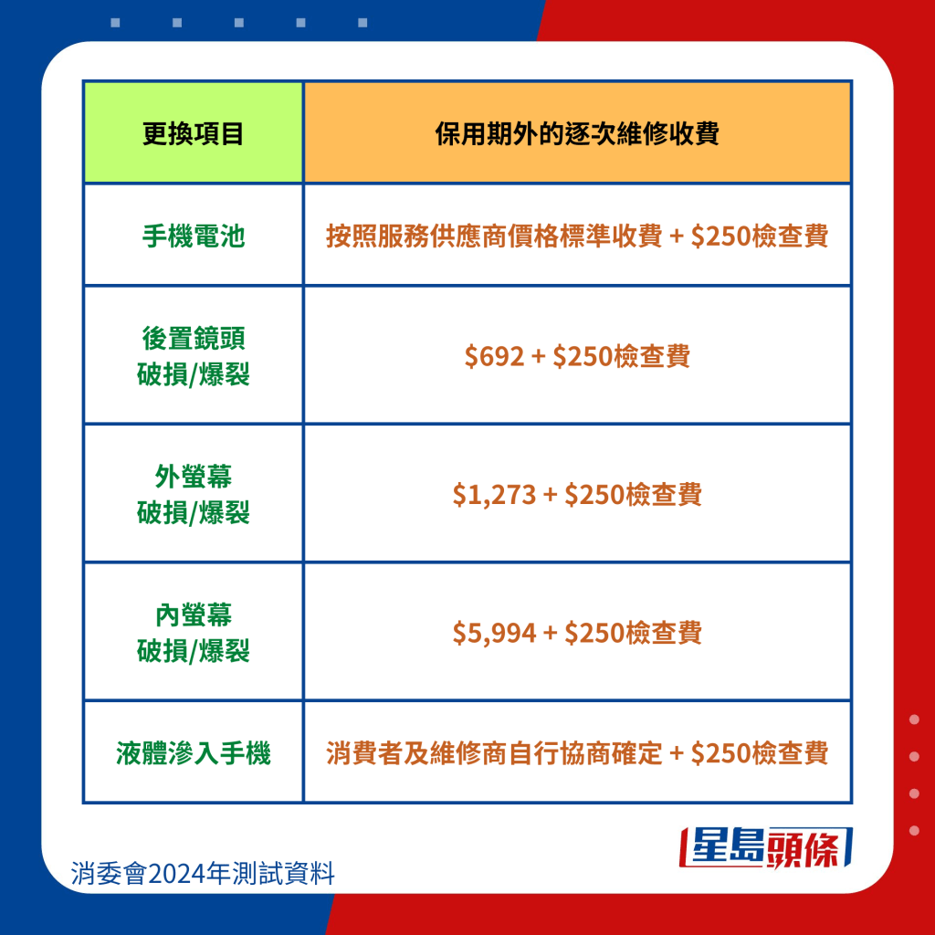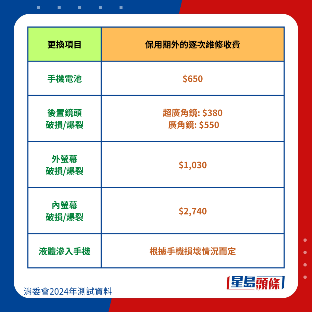 手機維修保用服務的重要性不可忽視。隨著手機在我們日常生活中愈來愈不可或缺,維修保養服務成為確保手機正常運作和延長使用壽命的關鍵。消費者委員會(下稱消委會),14日公布6個手機品牌,包括Samsung、華為、Apple、Sony等大熱品牌的售后保用、延長保用及保用期外的逐次維修服務資料,以及整合了維修或更換電池、后置鏡頭、螢幕維修的資料,以供消費者參考。