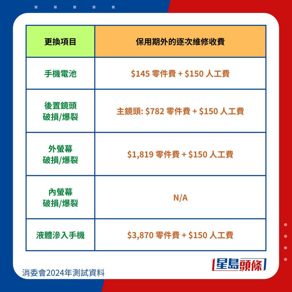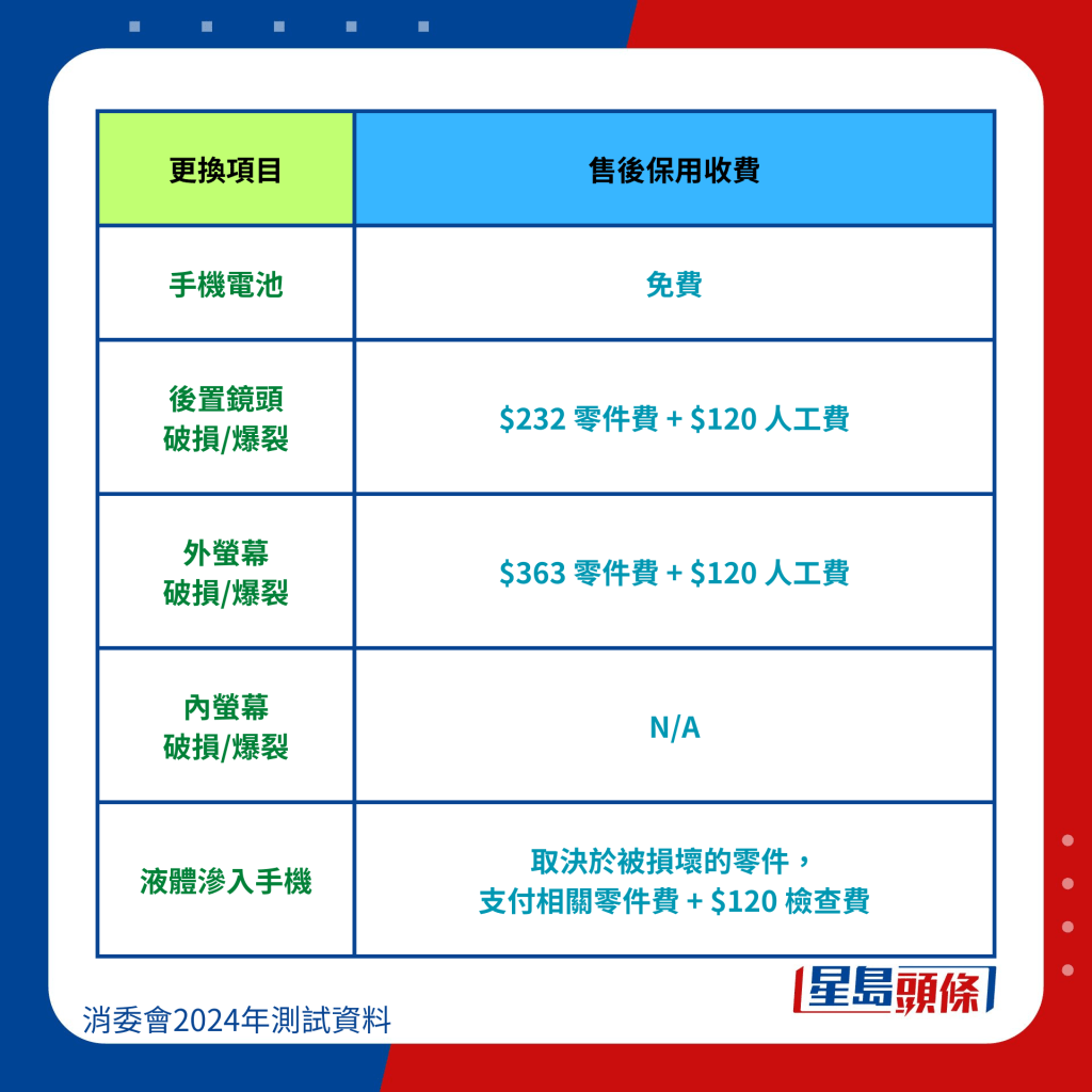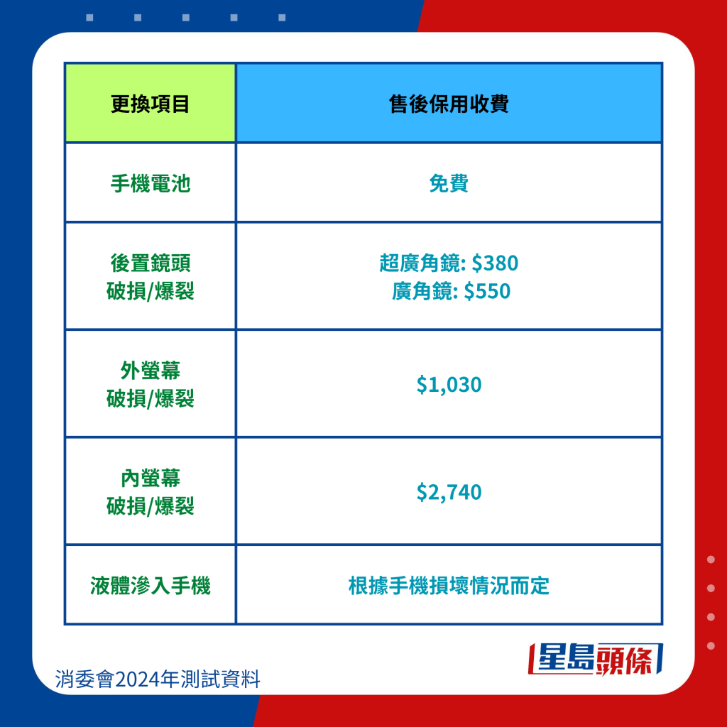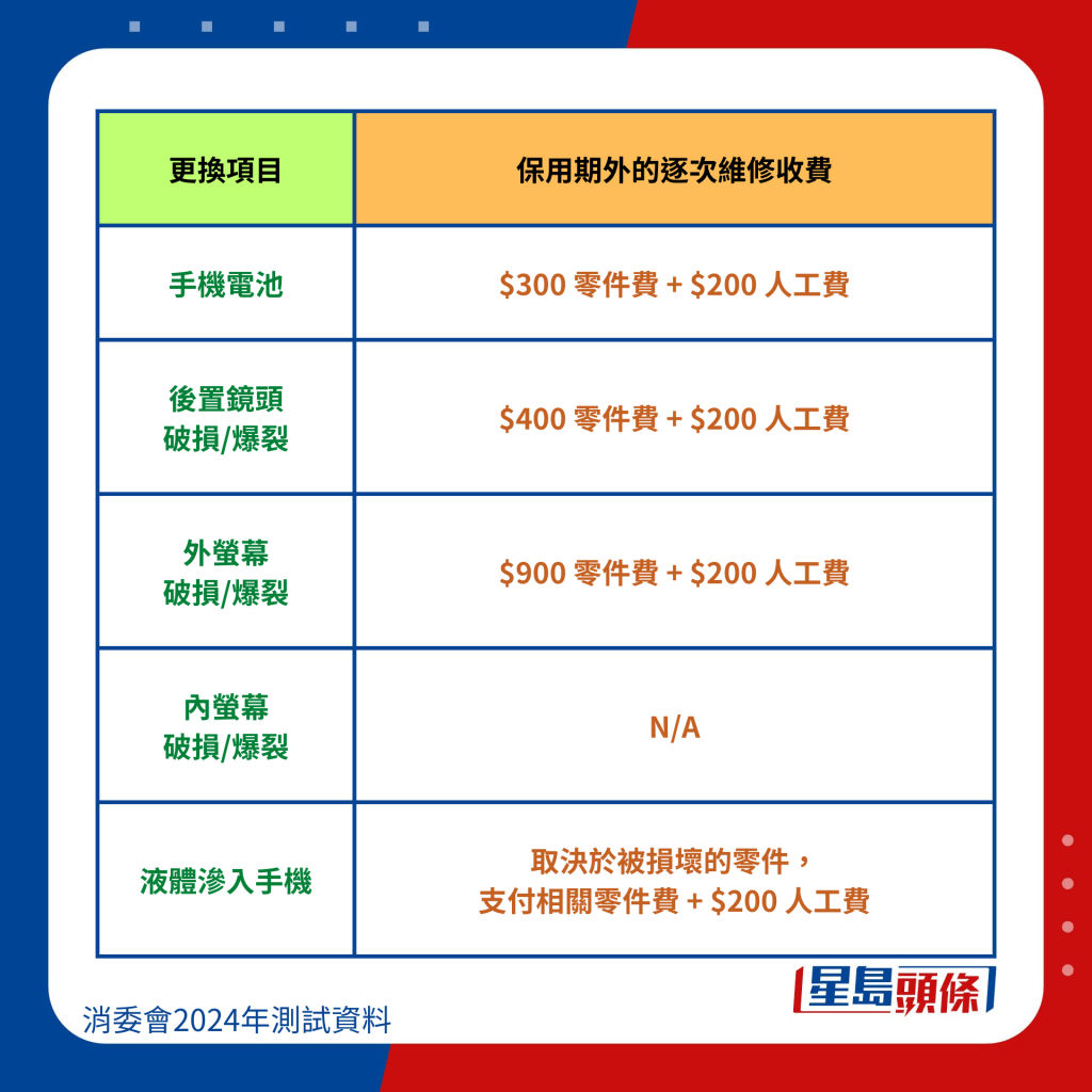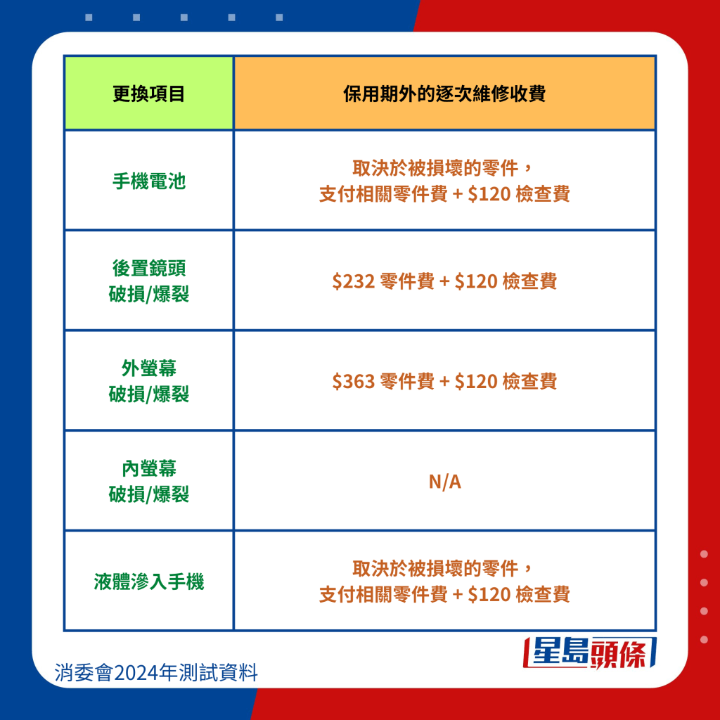 手機維修保用服務的重要性不可忽視。隨著手機在我們日常生活中愈來愈不可或缺,維修保養服務成為確保手機正常運作和延長使用壽命的關鍵。消費者委員會(下稱消委會),14日公布6個手機品牌,包括Samsung、華為、Apple、Sony等大熱品牌的售后保用、延長保用及保用期外的逐次維修服務資料,以及整合了維修或更換電池、后置鏡頭、螢幕維修的資料,以供消費者參考。