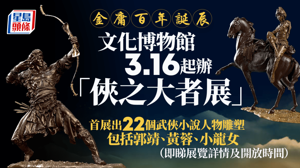 為紀念查良鏞博士(金庸)百年誕辰,香港文化博物館將于3月16日至10月7日于香港文化博物館舉行《俠之大者—金庸百年誕辰紀念·任哲雕塑展》,市民可免費入場。