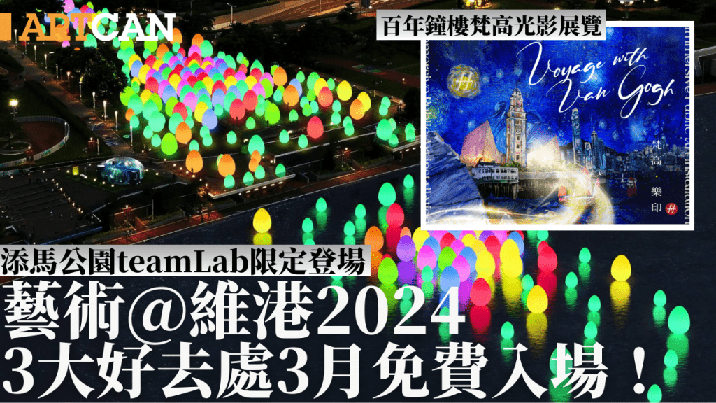 屆時將會展出多組結合藝術、科學和科技的戶外藝術裝置作品,以及大屏幕數碼影像,包括國際藝術團隊teamLab主理的大型藝術裝置、梵高沉浸式光影展覽等,為維港兩岸帶來五彩十色、耳目一新的的夜繽紛體驗!