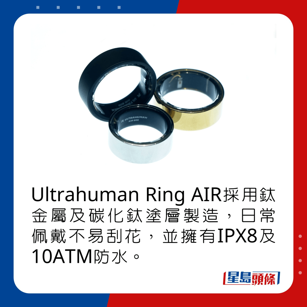 ▲Ultrahuman Ring AIR采用鈦金屬及碳化鈦涂層制造,日常佩戴不易刮花,并擁有IPX8及10ATM防水。