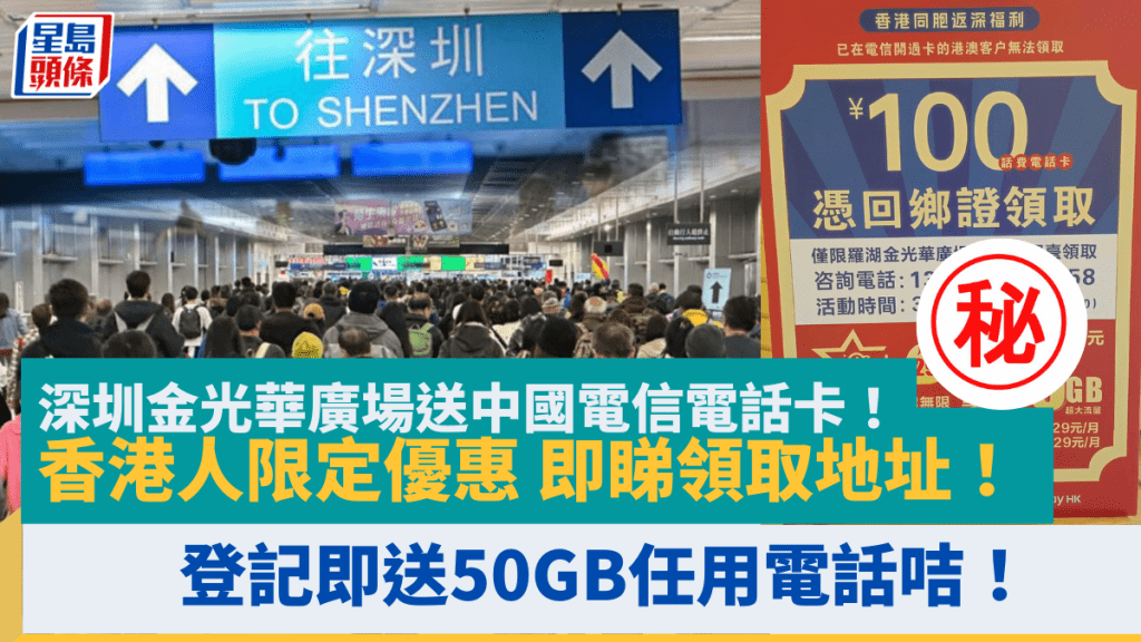 深圳金光華廣場送中國電信電話卡,港人憑回鄉證即取即用