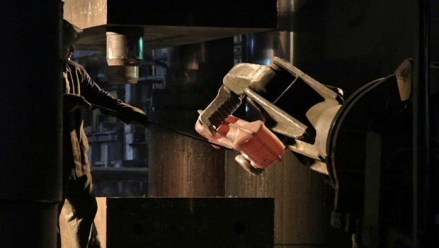 俄羅斯鈦生產商VSMPO 一名員工操作鈦錠壓制。 路透社資料圖