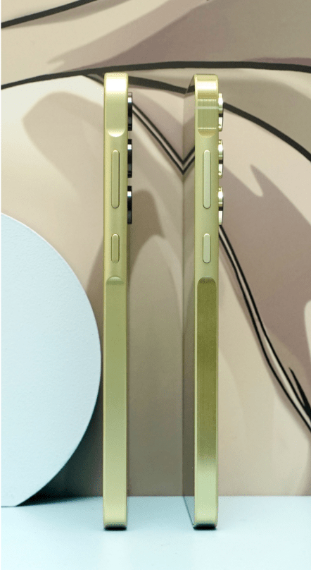 ▲Galaxy A55 5G(右)首度用上金屬邊框,質感有別A35 5G(左)的膠邊框。