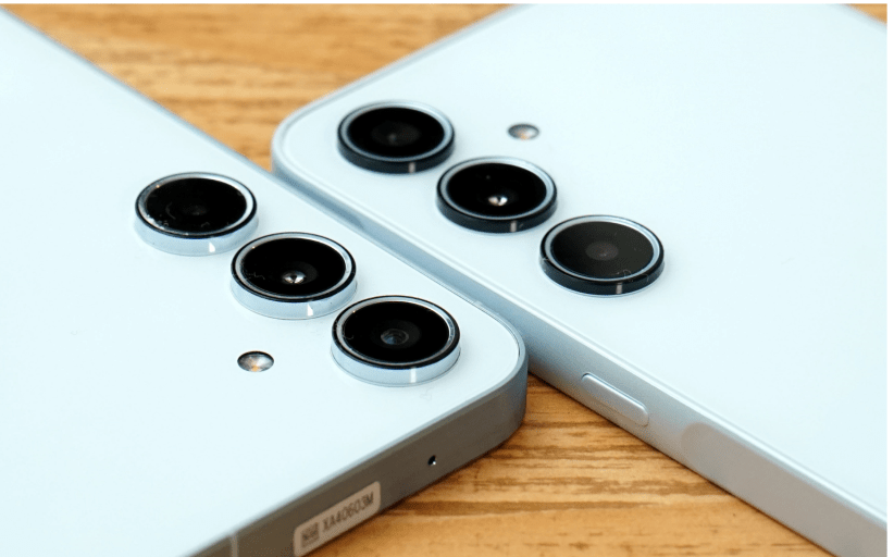 ▲Galaxy A55 5G(左)及A35 5G(右)同樣采用玻璃機背,機身顏色也一樣,教人難以一眼分辨出來。
