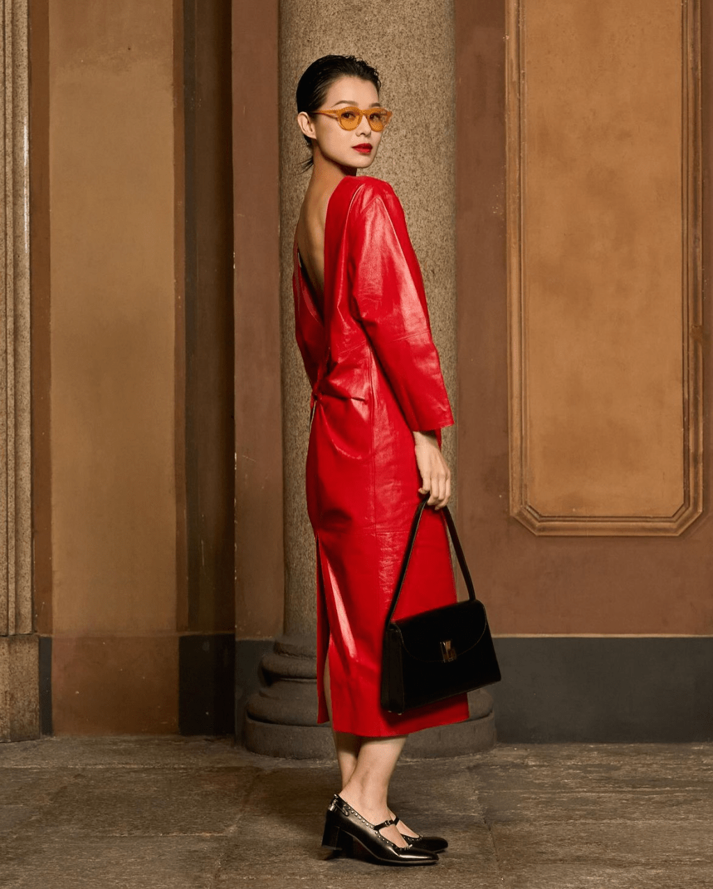 ▲香港藝人胡杏兒以大露背連身裙襯以窩釘Mary Jane高跟鞋,型格又性感。(圖片來源:IG@myoliemyolie)