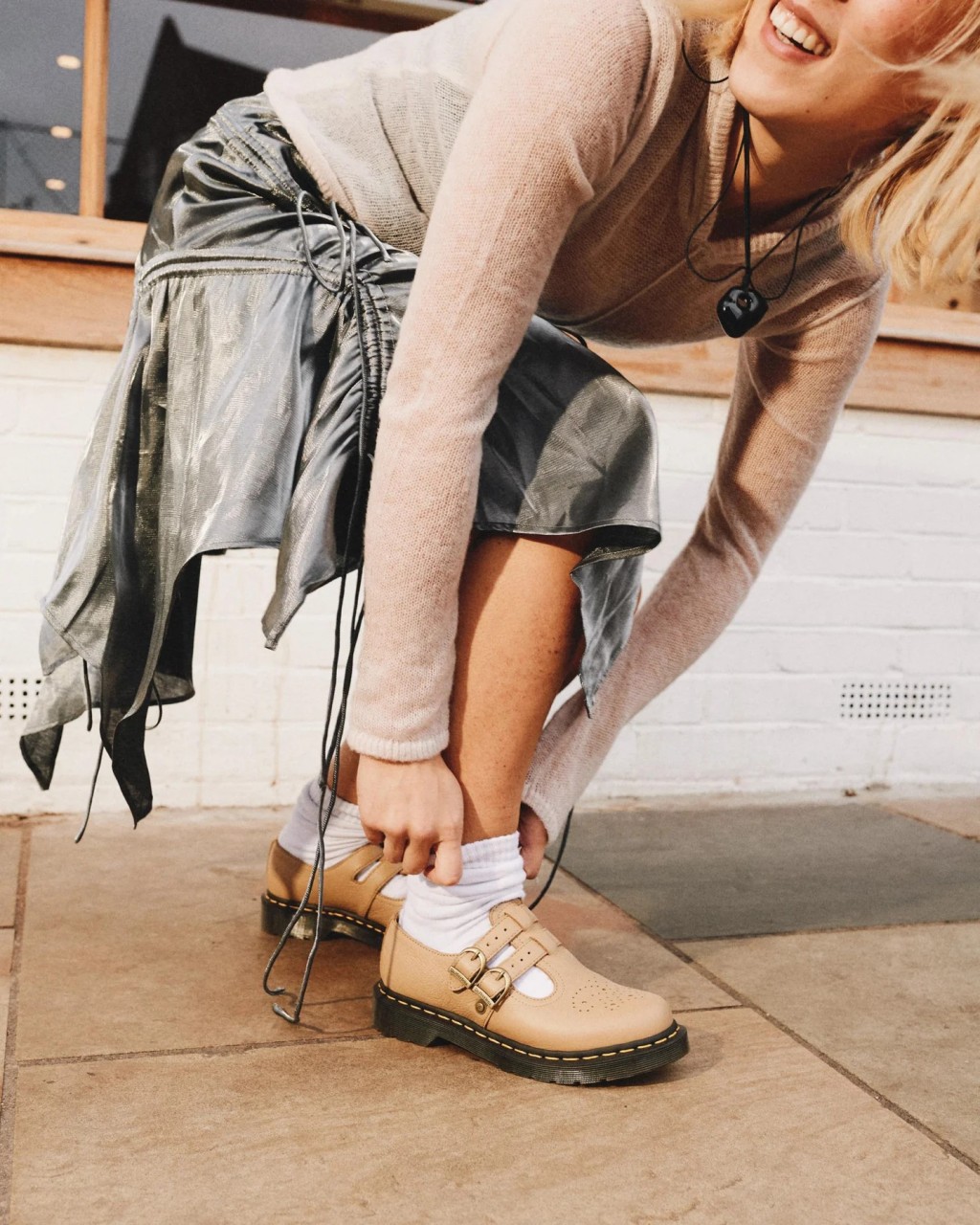 ▲Dr. Martens新品,同樣以圓鞋頭設計為主,拼以雙搭帶及通孔圖案,展現Retro Style。 (圖片來源:Dr. Martens網站)