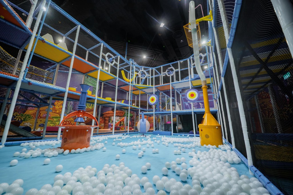 小朋友必玩滿紛樂園室內游樂場,占地4層共29,600平方呎的5大主題游樂區,包括海底、山巖、叢林、太空站和外太空,不同年齡層的孩子們都可以在此盡情、跳躍、攀爬、探索,盡享多元玩樂體驗,挑戰自我,小朋友定樂而忘返。