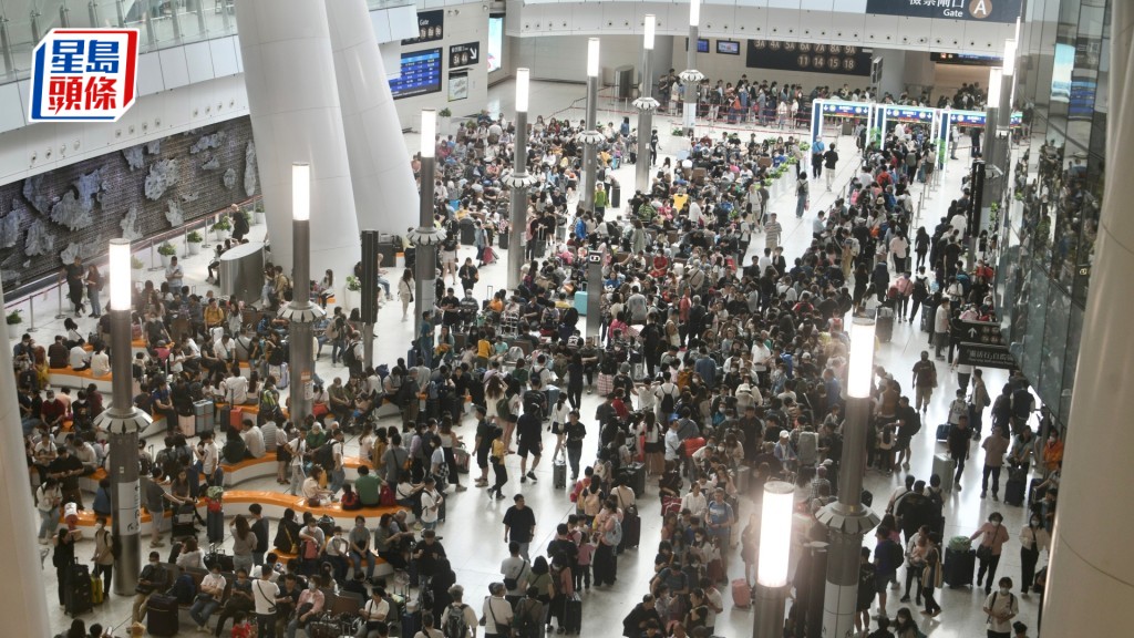 ▲西九高鐵站今日在離港大堂依然大排長龍。