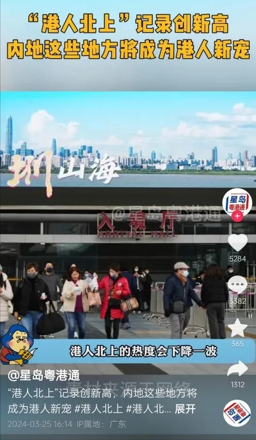 周一(25日),星島粵港通抖音號發布了一條關于“港人北上”的視頻,視頻獲得大量內地網友留言。