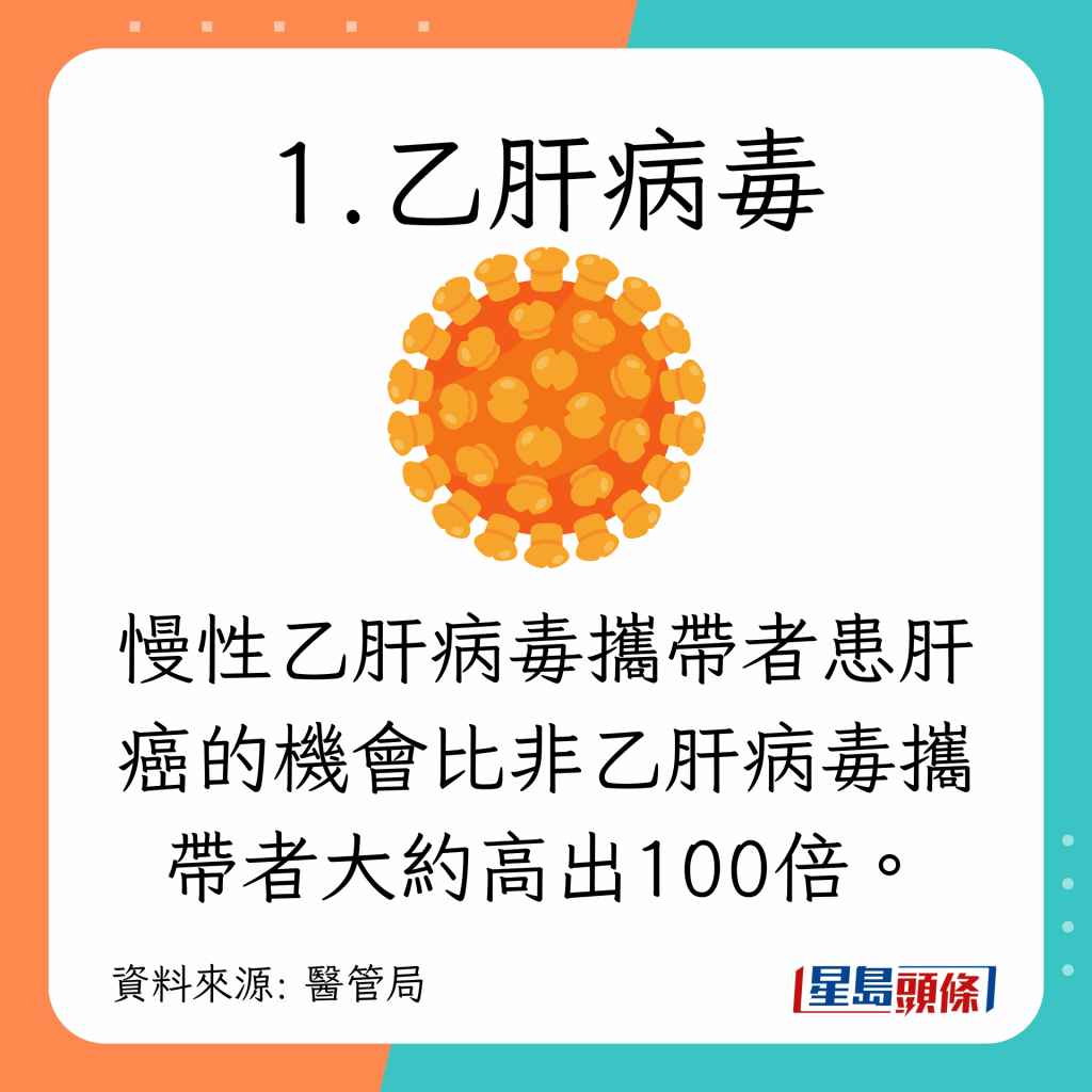 根據香港醫管局資料,肝癌可由于食物當中的1種毒素所引發。8種增加肝癌風險的高危因素如下:
