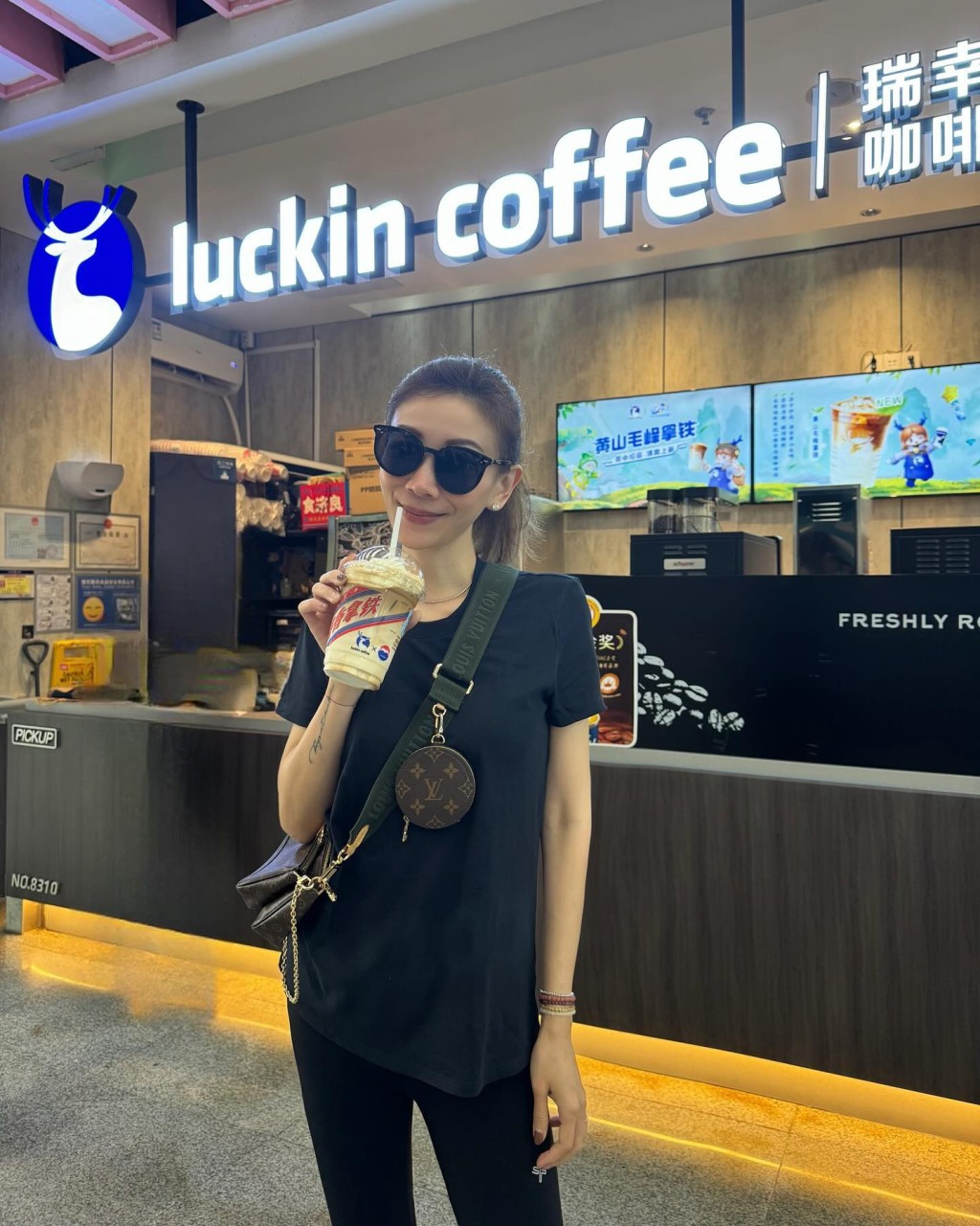 區文詩潮飲瑞幸醬香拿鐵,一杯40人民幣有找。