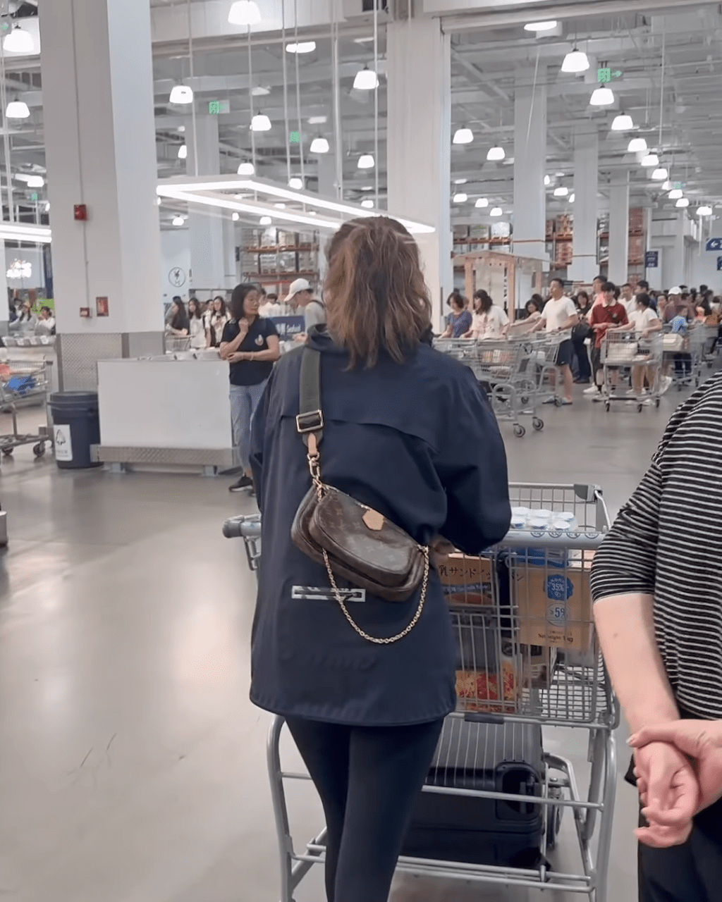 其間,區文詩又到大型倉儲式超市山姆(Sam's Club)掃貨,可見她的手推車載滿面膜、益力多、豆乳夾心面包、冷藏意大利面等食物及日用品,更疑似即場購入一個大行李箱“帶貨”返港,相當夸張,不少網民都大贊她生活貼地。