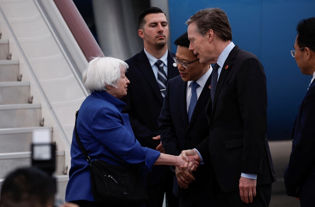 ▲美財政部部長耶倫抵達廣州,財政部副部長廖珉、美國駐華大使伯恩斯接機。路透社