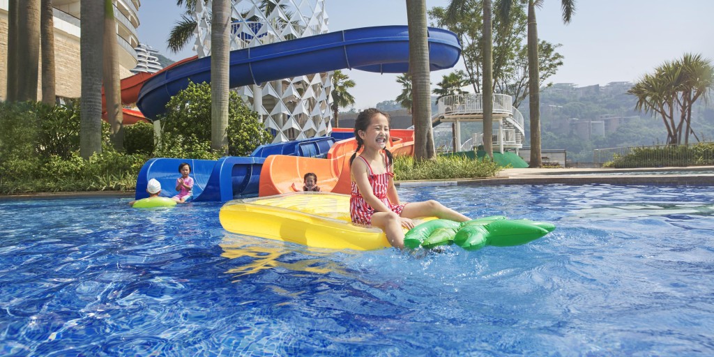 .暢玩酒店戶外區域,包括室外泳池、水上滑梯等