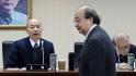▲“立法院”15日上演“國會”改革法案朝野對抗,并在“司法及法制委員會”繼續審查,民進黨團總召柯建銘(背對者)批評,藍白在野陣營沒有等民進黨團版本并案審查,就急著將法案送出,做法粗糙,并上前與委員會主席吳宗憲(后)討論,吳宗憲則請柯總召詳讀“立法院”議事規則。中時新聞網