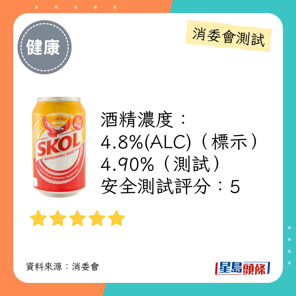 消委會啤酒滿分安全推介名單:香港啤酒公司。