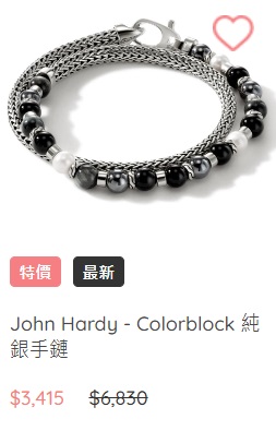 除了手袋之外,日常必用的銀包、手提包、卡片套同樣以特價發售,最平$690就可以入手,方便配襯日常服飾。此外,女John Hardy品牌銀飾及太子珠寶亦有激減優惠,想趁此鎬賞自己的女生們不要錯過!現于網店單一購物滿$1800,輸入“TW60”優惠碼可即減$60;單一消費滿額$3200,輸入“TW120”可減$120。