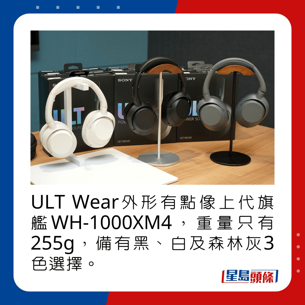 ULT Wear外形有點像上代旗艦WH-1000XM4,重量只有255g,備有黑、白及森林灰3色選擇。