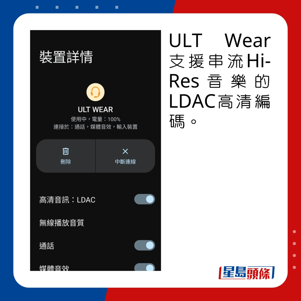ULT Wear支援串流Hi-Res音樂的LDAC高清編碼。