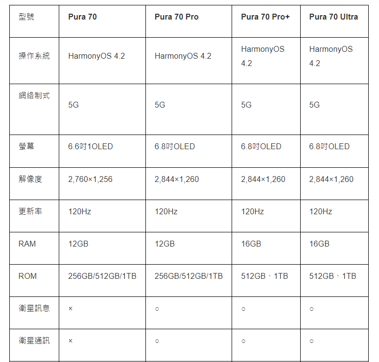 華為Pura 70系列開賣即被秒殺  4款型號規格大比拼