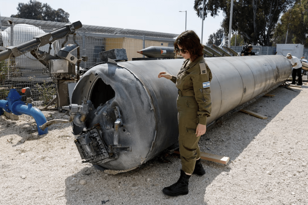 ▲以色列軍方展示伊朗的彈道導彈。路透社