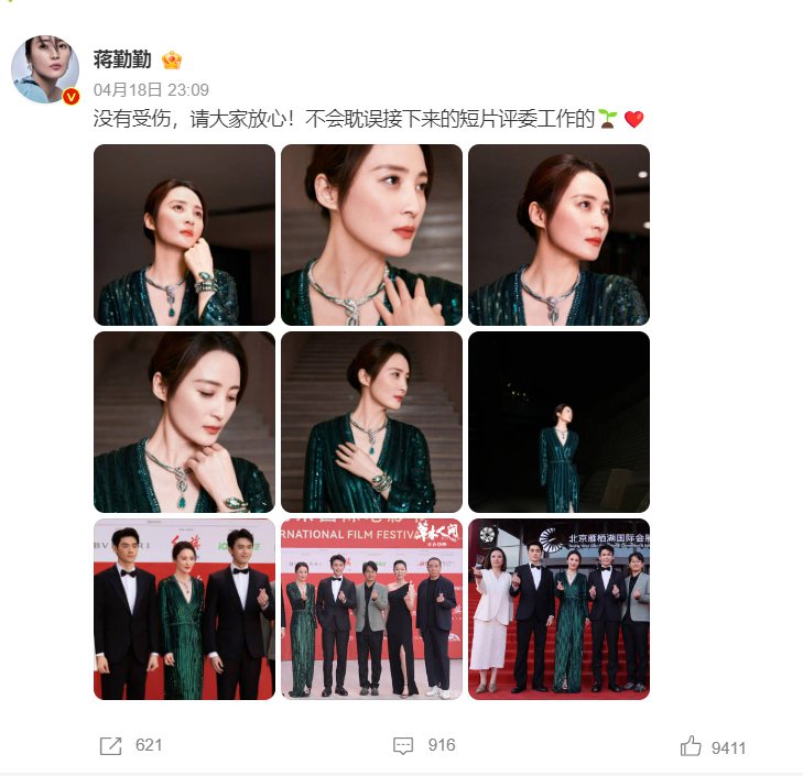▲事后蔣勤勤在微博上發文報平安,“沒有受傷,請大家放心!不會耽誤接下來的短片評委工作的?!?/strong>