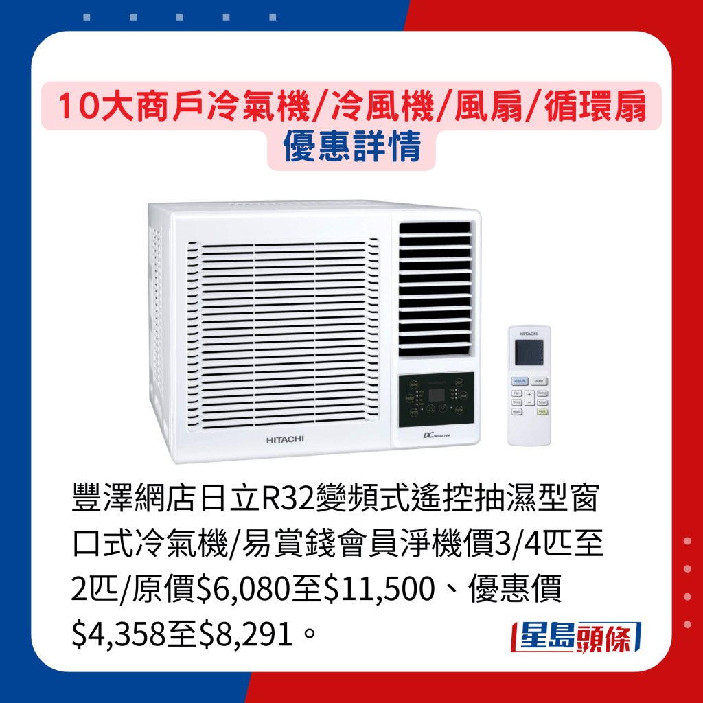 買冷氣機,須考慮安裝位置而決定選擇分體式或窗口式型號之外,也要顧及房間或客廳的面積而決定匹數多少。 另要留意冷氣機的能源效益標簽共分為5級,1級為最佳,環保節能兼省電。 若心目中已有頭緒,就要比較不同商戶的推廣優惠,提升性價比。 一田百貨的春日購物賞雖于5月才開鑼,但官方eShop就由即日至4月22日率先發售逾千件筍貨,當中正包括冷氣機,其中開利1匹變頻窗口式冷氣機原售$7,080,現減至$4,200。 另單一訂單滿$1,000更可享免運費。 至于豐澤網店,部分指定型號冷氣機都有提供折扣,現凡購買任何品牌及型號冷氣機,更可獲贈價值$299的Cuisinart微波環保便當盒套裝。