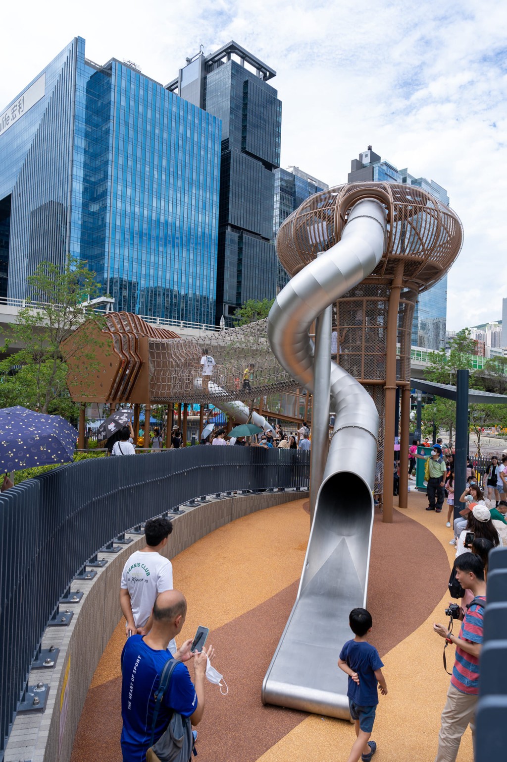 旅行時常羨慕外國小朋友有廣闊空間跑跑跳跳,香港終于也有個極廣闊的公共空間,大人長者可在海濱漫步,小朋友則可以嬉水之余,還能暢玩長滑梯,穿梭不同的游樂設施。