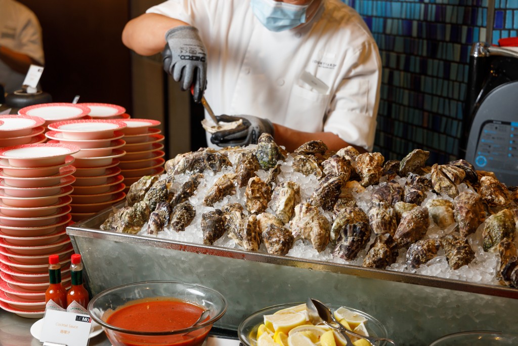 “和風?莓滋味”自助晚餐除了有即開生蠔,還有鱈場蟹腳、面包蟹、波士頓龍蝦、紅蝦、油甘魚,還有金腿花膠海鮮雞湯、傳統瑞士熱溶芝士,周末更有限定帶子、日式海膽醬薯仔沙律、香煎羊扒配露絲瑪利汁、香煎牛舌等,亦會于5月12日母親節當日為媽媽們送上黑糖桃膠椰皇燉蛋白。
