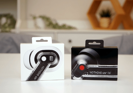 ▲Nothing Ear(左)及Ear (a)(右)繼續以無塑膠包裝,封面印有大型耳機圖片。