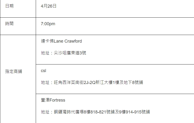 2款新耳機將于4月26日(五)開賣,當日晚上7時,官方在3間指定商鋪舉行限時優惠活動,只要即場購買Nothing Ear或Ear (a),即可獲得CMF by Nothing Watch Pro智能手表(價值$549),每家商店限量送50只,先到先得,送完即止。
