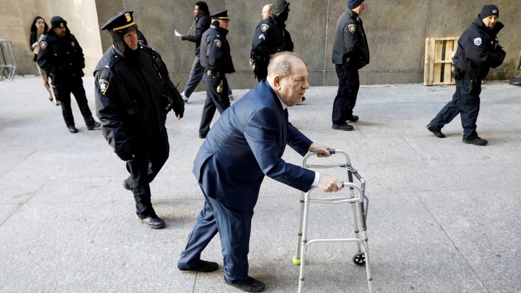▲2020年韋恩斯坦推著助行架抵達法庭。 路透社