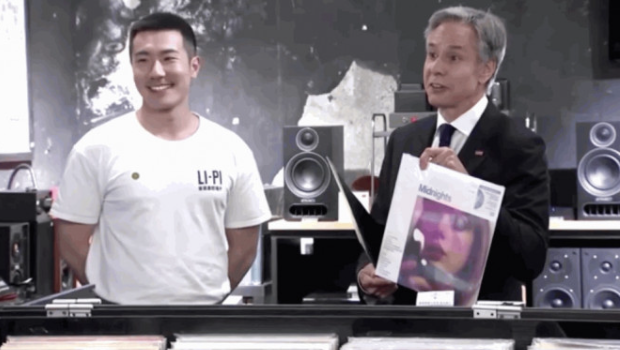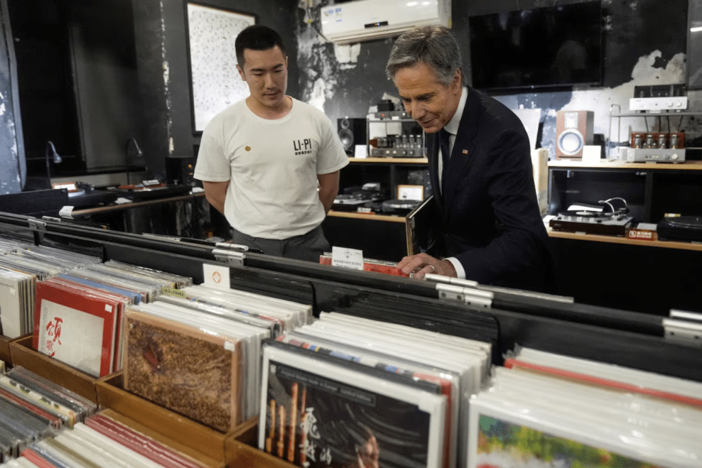 布林肯離京前突訪文青唱片店,買2巨星黑膠碟做紀念品