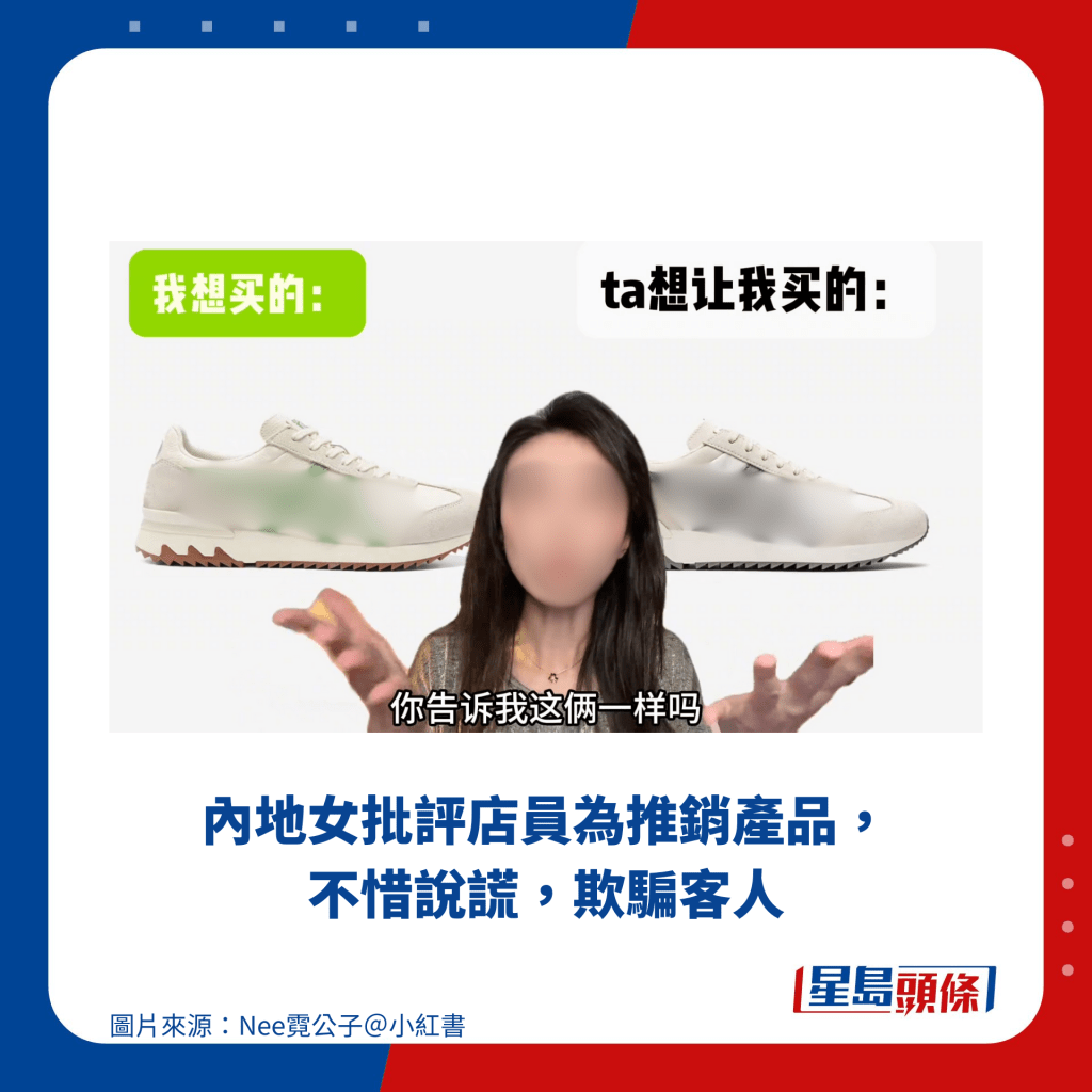 ▲內地女批評店員為推銷產品,不惜說謊,欺騙客人
