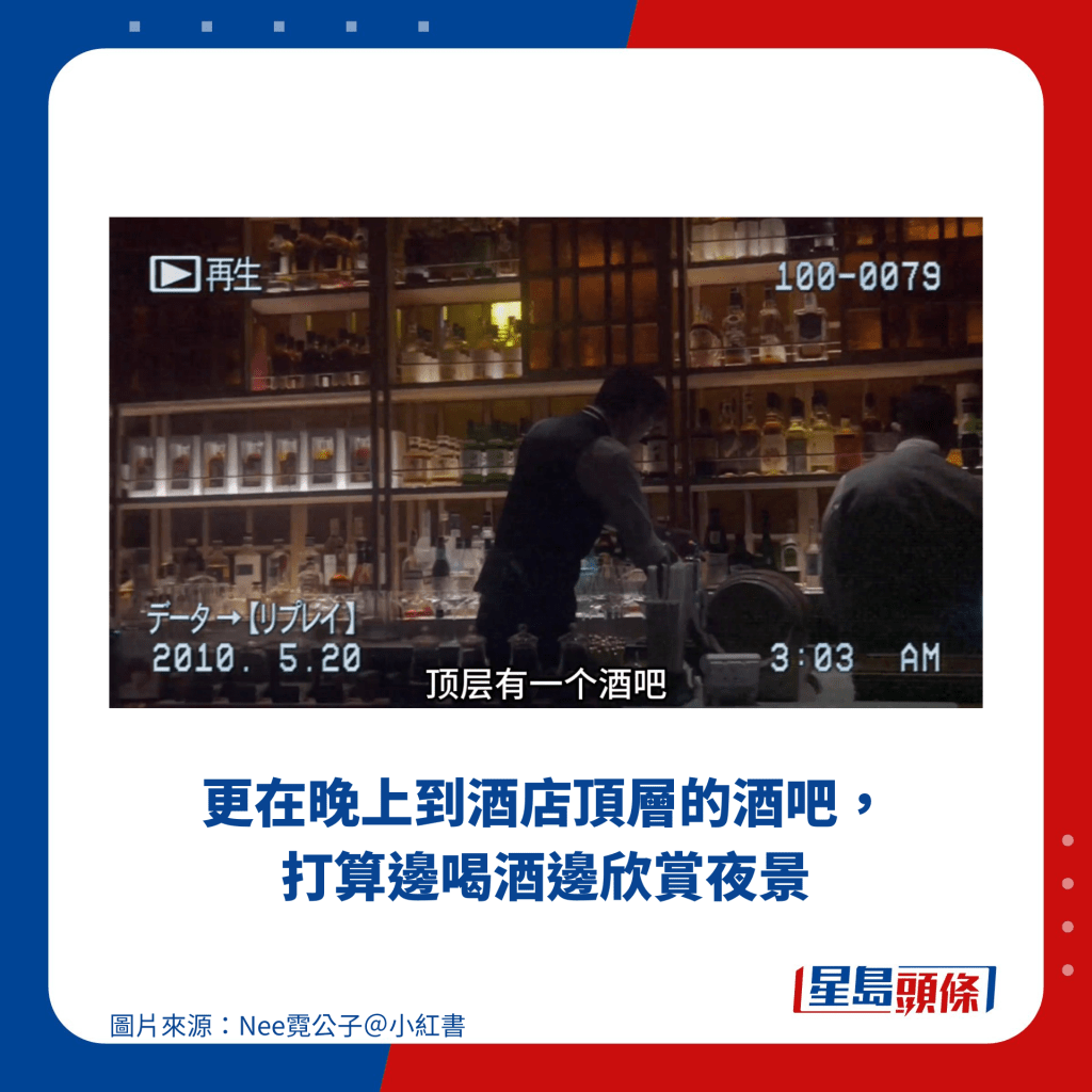 ▲更在晚上到酒店頂層的酒吧,打算邊喝酒邊欣賞夜景