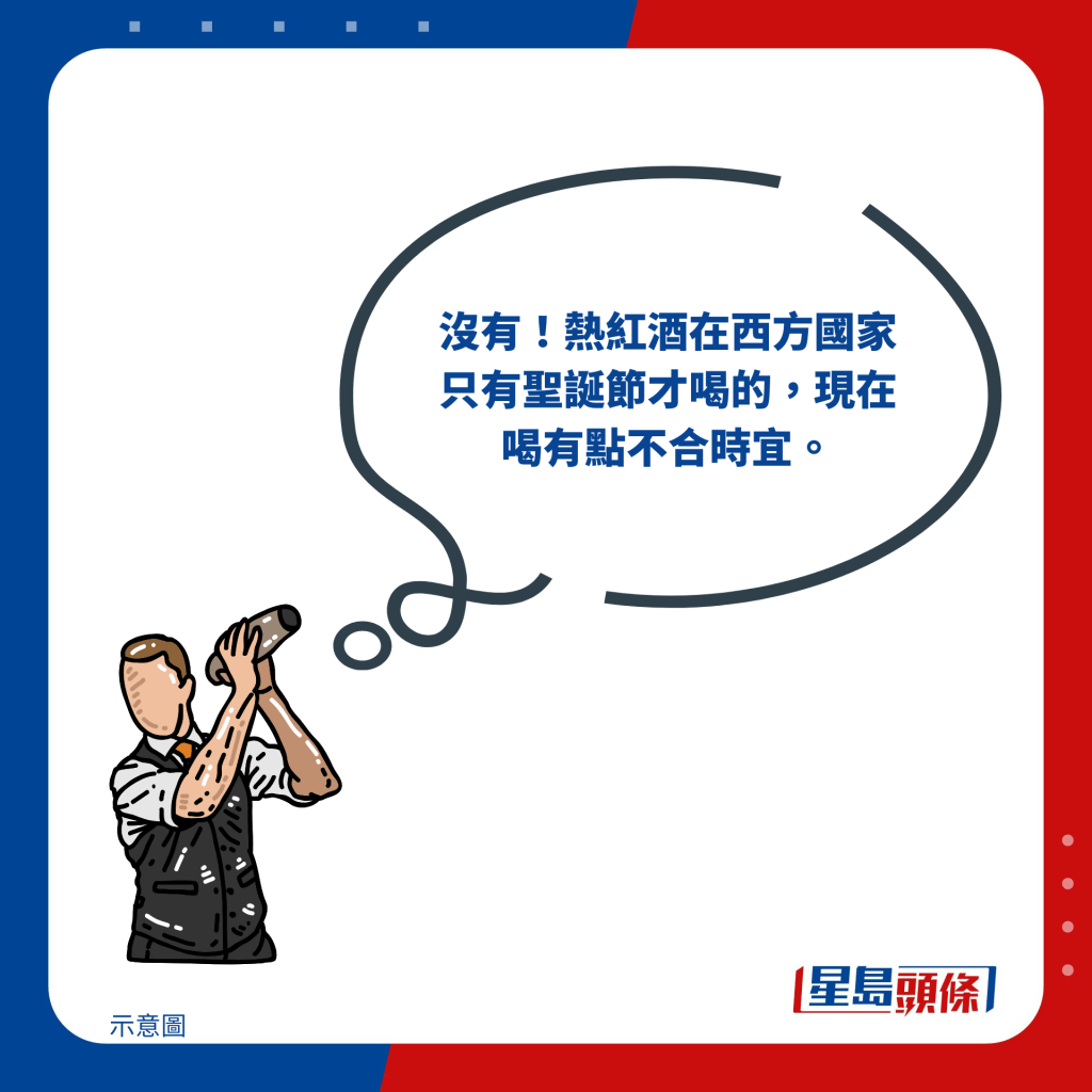 ▲“沒有!熱紅酒在西方國家只有圣誕節才喝的,現在喝有點不合時宜?!?/strong>