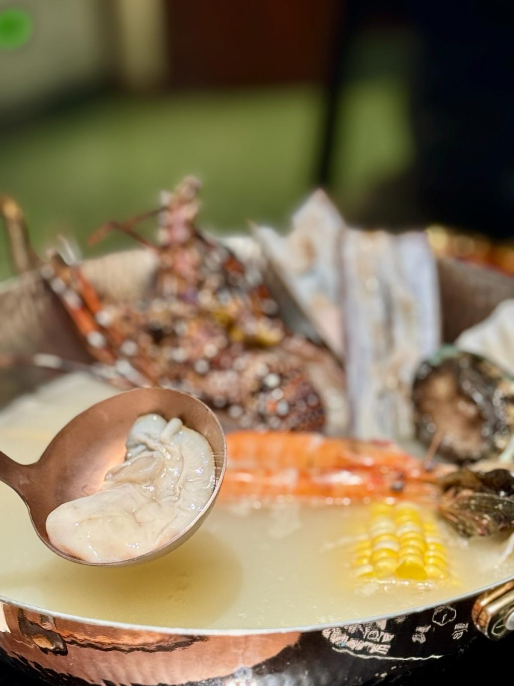 ▲記者建議揀選由日本及本地鯛魚熬制成的極上鯛魚湯底,味道較淡、清甜,更能品嘗到海鮮的鮮味。