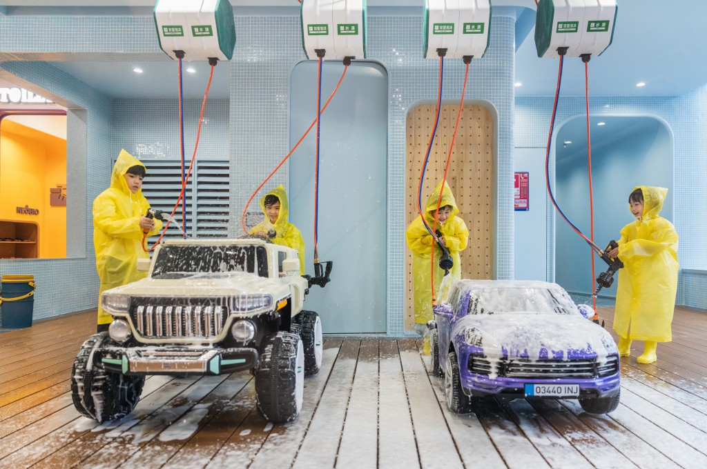 早前Hannah雨豬仔媽媽就帶小朋友去全新開幕的奈爾寶家庭中心NeoBio南山區匯港店游玩,小朋友先到“洗車場”扮洗車員,那里備有多架小車輛,還有各式各樣的專業洗車設備,如泡沫槍、水桶等,小小洗車員穿上雨衣、水鞋后,就要“開工”用泡沫槍噴的柔和泡沫,為車輛“洗白白”,之后就到“車廠”維修車輛,“車廠” 更如真實維修公司一樣,將車輛架起讓小小維修員躺在地上維修車底!小朋友還可到超級市場shopping,采購各式各樣食物,再到收銀處“付款”后,就可到迷你廚房發揮廚藝!生活在城市的孩子未必知道如何取牛奶,在“奶牛牧場”就可嘗試擠牛奶,還可跟“小動物”近距離接觸。