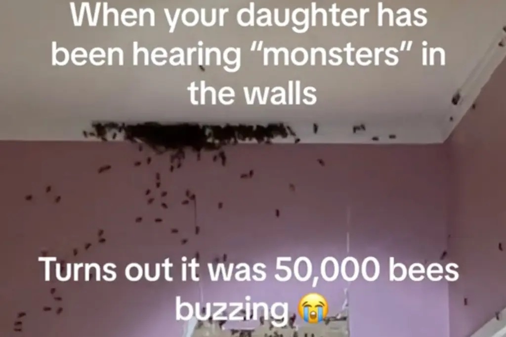 居于美國北卡羅來納州的婦人艾希莉.克拉斯 (Ashley Class) 近日在TikTok網站發片,述說她的三歲女兒告訴她,女兒臥室里有“怪物”。艾希莉聽后最初心里也“發毛”,但為了女兒安全著想也不得不硬著頭皮深入查究。最終也查明真相,結果令她感到出人意表,居然是女兒房內有蜜蜂群在墻壁內生長了8個月,且數目已增至5萬只。而艾希莉這段TikTok片,得到了點擊次數高達910萬次。