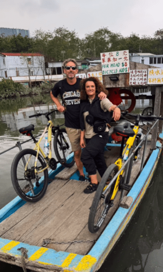 ▲云達沙夫婦踩單車游南生圍,攜車搭橫水渡。 云達沙IG