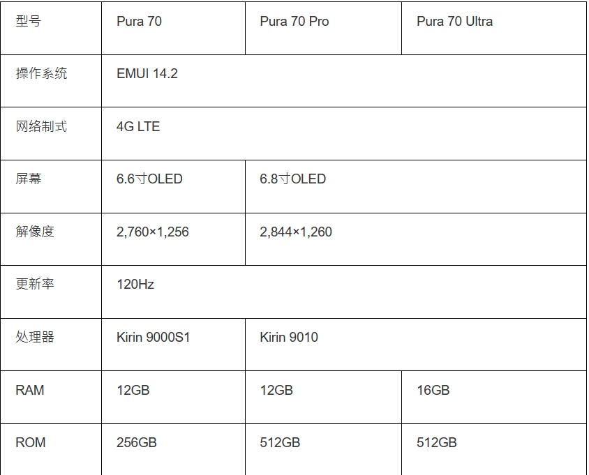 Pura 70系列港版規格一覽 Pura 70/Pura 70 Pro/Pura 70 Ultra