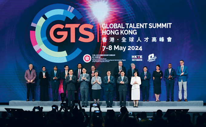 ▲首屆“香港.全球人才高峰會”在香港會展開幕,李家超(前排右三)主禮。