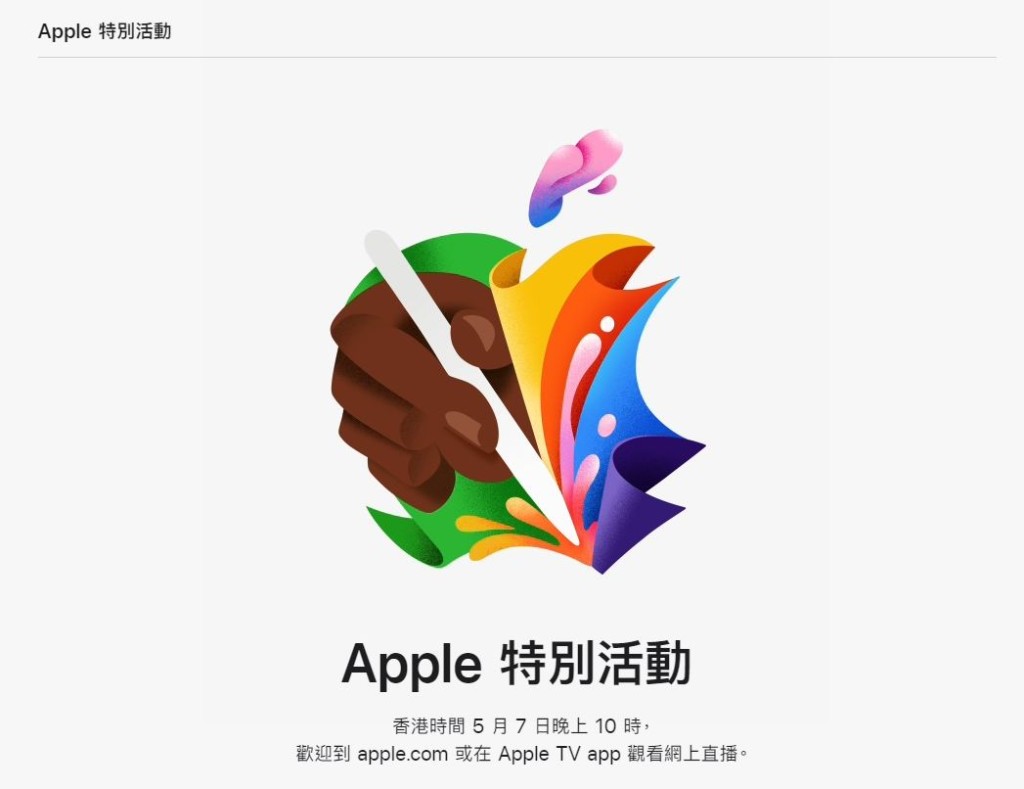 ▲Apple日前宣布5月7日晚上舉行主題“Let Loose”的發布會,由于邀請函出現手執Apple Pencil圖案,預計新iPad Pro及iPad Air會相繼亮相。