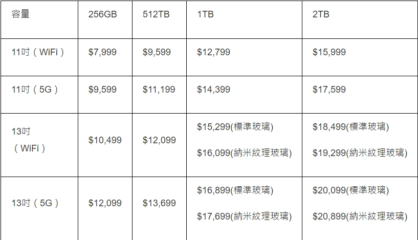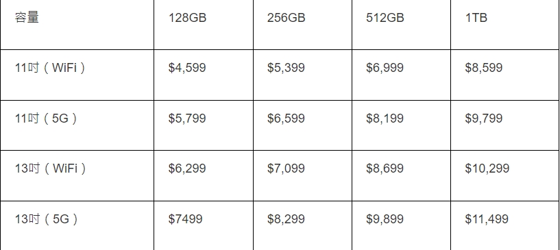22:36|新iPad Pro最大容量維持2TB,售價由999美元起,今日接受預訂,下周正式開賣。