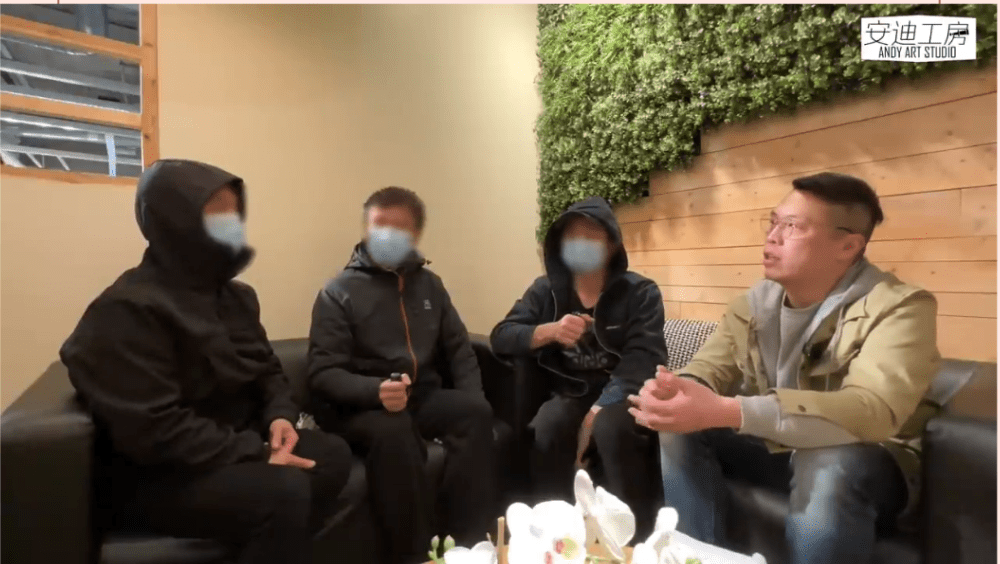 ▲17名被炒移英港人的代表(左一至三),接受Youtube頻道安迪工房訪問。